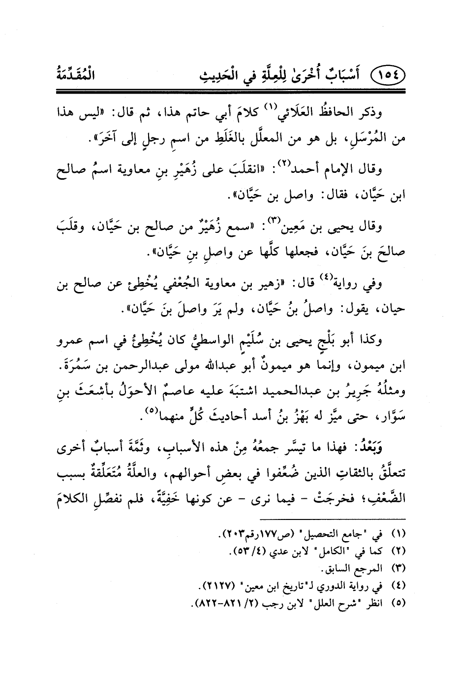وقال الإمام أحمد (٢) : «انقلَبَ على زُهَيْرِ ابنِ معاوية اسمُ صالح بن حَيَّان، فقال: واصل بن حَيَّان» .