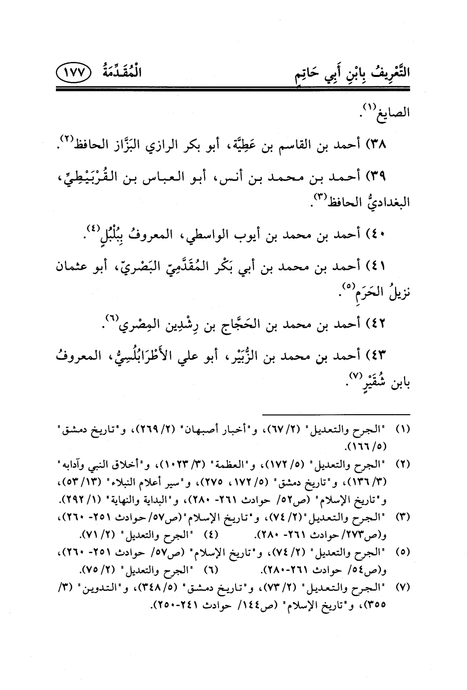 (٥) "الجرح والتعديل" (٢/٧٤) ، و"تاريخ الإسلام" (ص٥٧/ حوادث ٢٥١- ٢٦٠) ، و (ص٥٤/ حوادث ٢٦١- ٢٨٠) .