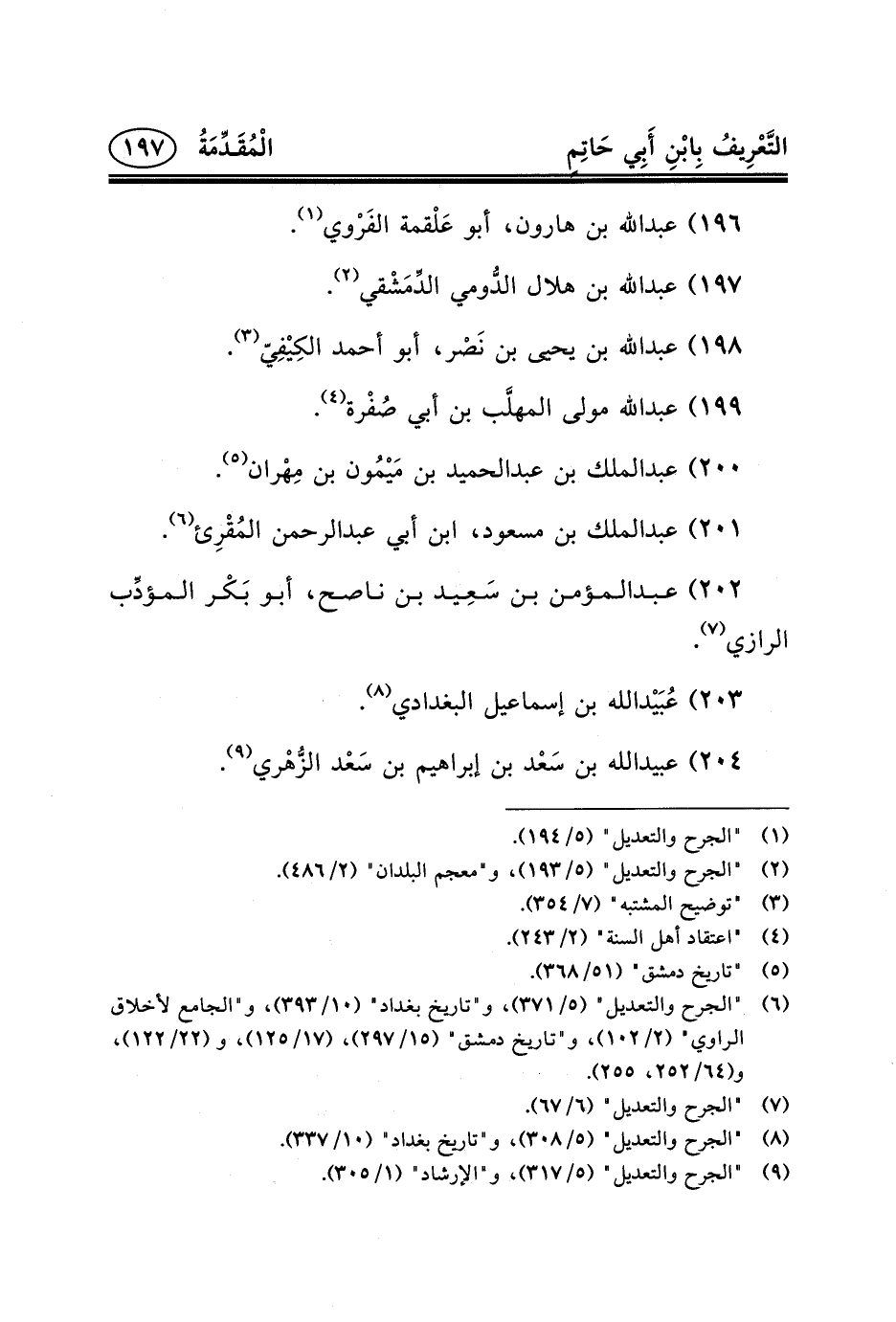 (٦) "الجرح والتعديل" (٥/٣٧١) ، و"تاريخ بغداد" (١٠/٣٩٣) ، و"الجامع لأخلاق الراوي" (٢/١٠٢) ، و"تاريخ دمشق" (١٥/٢٩٧) ، (١٧/١٢٥) ، و (٢٢/١٢٢) ، و (٦٤/٢٥٢، ٢٥٥) .