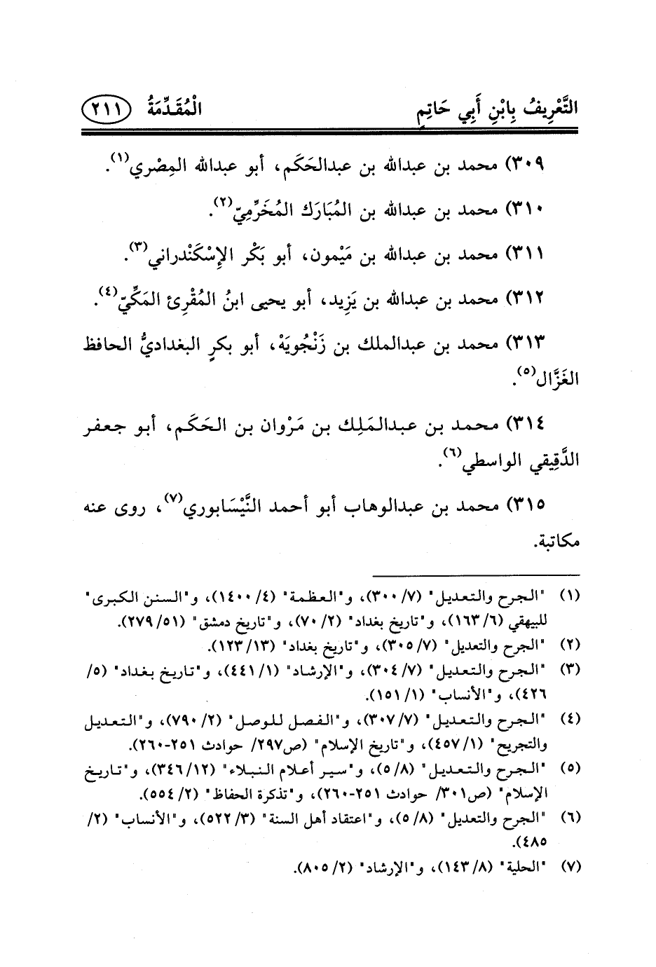 (٥) "الجرح والتعديل" (٨/٥) ، و"سير أعلام النبلاء" (١٢/٣٤٦) ، و"تاريخ الإسلام" (ص٣٠١/ حوادث ٢٥١-٢٦٠) ، و"تذكرة الحفاظ" (٢/٥٥٤) .