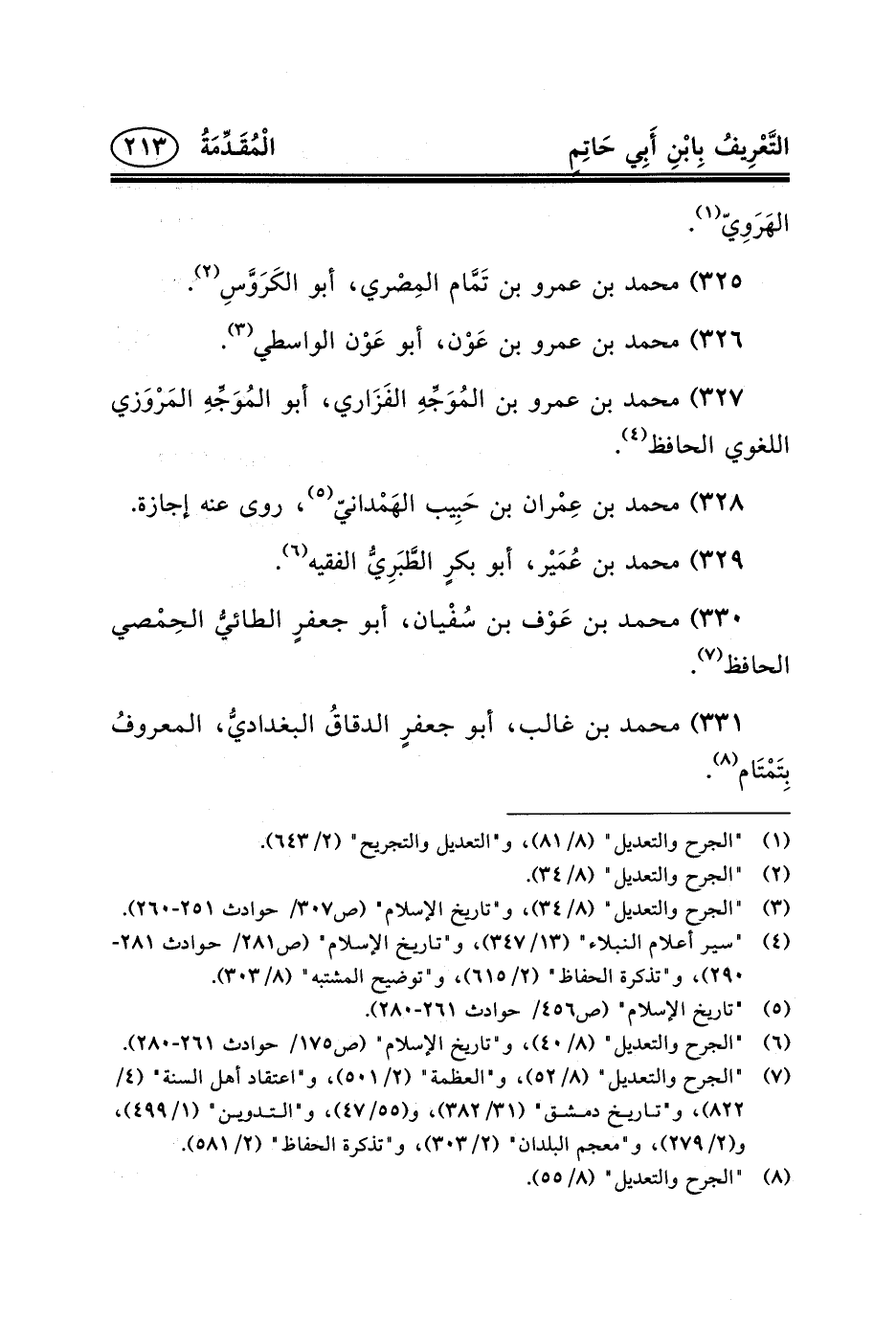(٦) "الجرح والتعديل" (٨/٤٠) ، و"تاريخ الإسلام" (ص١٧٥/ حوادث ٢٦١-٢٨٠) .