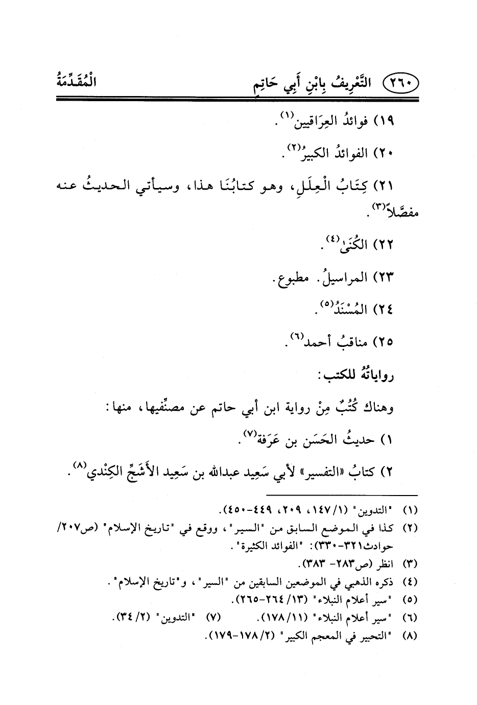 وهناك كُتُبٌ مِنْ رواية ابن أبي حاتم عن مصنِّفيها، منها: