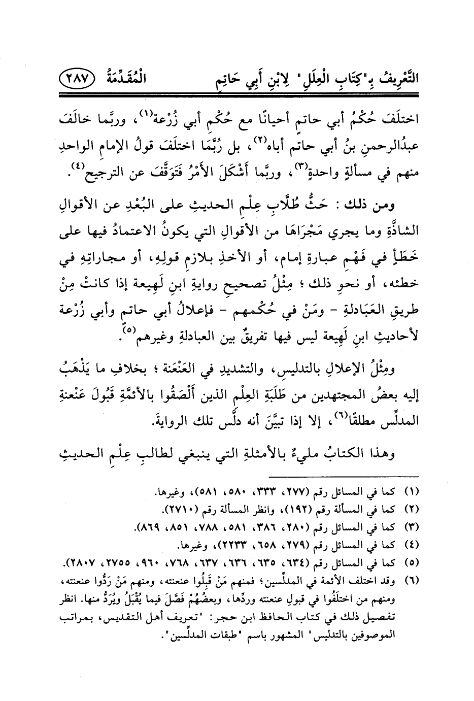 وهذا الكتابُ مليءٌ بالأمثلةِ التي ينبغي لطالبِ عِلْمِ الحديثِ