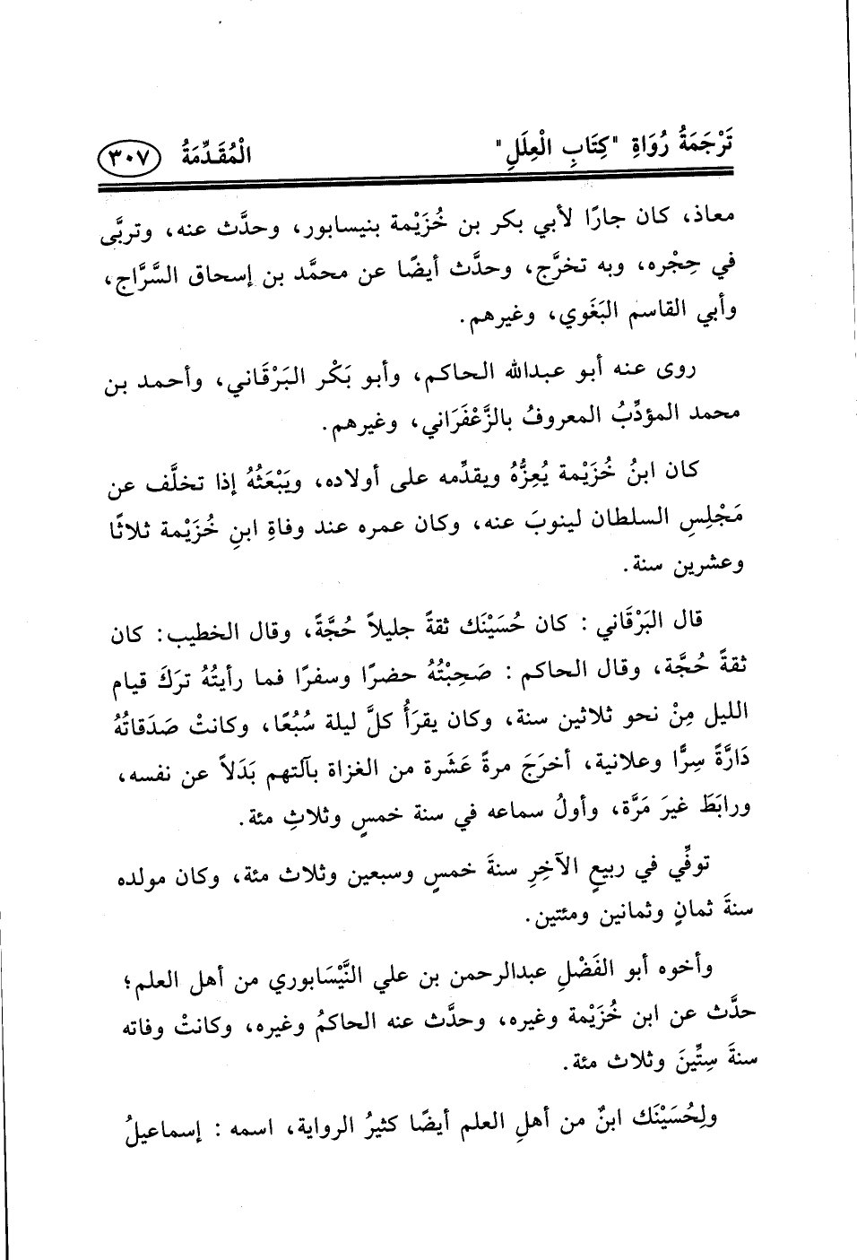 كان ابنُ خُزَيْمة يُعِزُّهُ ويقدِّمه على أولاده، ويَبْعَثُهُ إذا تخلَّف عن مَجْلِسِ السلطان لينوبَ عنه، وكان عمره عند وفاةِ ابنِ خُزَيْمة ثلاثًا وعشرين سنة.