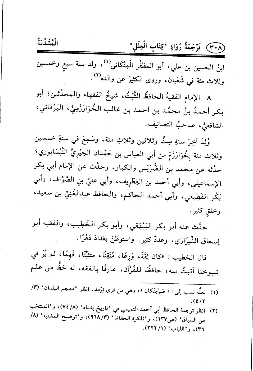 ٨- الإمام الفقيهُ الحافظُ الثَّبْتُ، شيخُ الفقهاء والمحدِّثين؛ أبو بكر أحمدُ بنُ محمَّد ابن أحمد بن غالب الخُوَارَزْمِيُّ، البَرْقاني، الشافعيُّ، صاحبُ التصانيف.