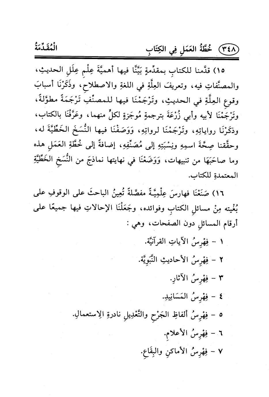 ١٦) صَنَعْنَا فهارسَ عِلْمِيَّةً مفصَّلةً تُعِينُ الباحثَ على الوقوفِ على بُغْيته مِنْ مسائلِ الكتابِ وفوائده، وجَعَلْنَا الإحالاتِ فيها جميعًا على أرقام المسائلِ دون الصفحات، وهي: