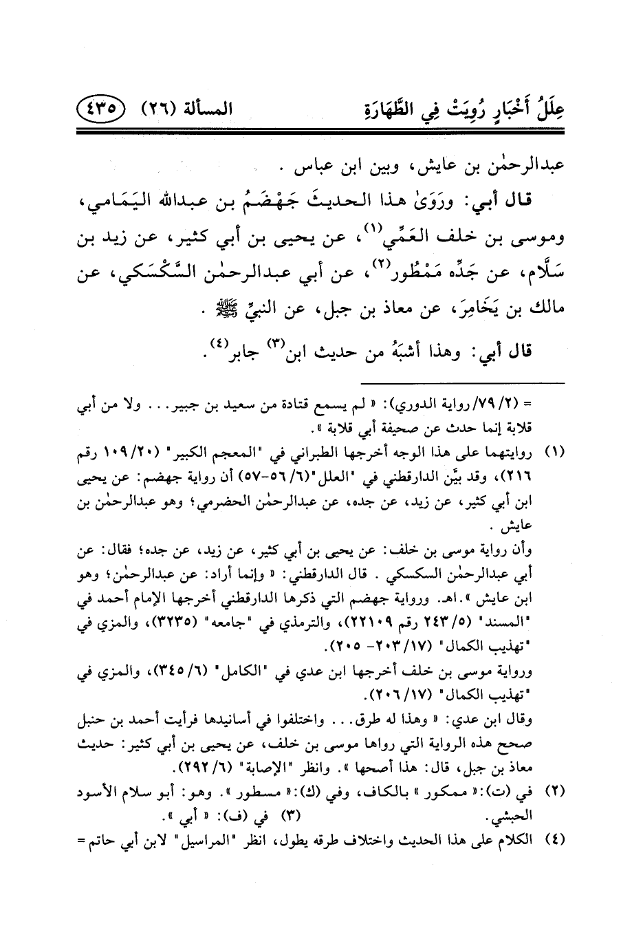 قَالَ أَبِي: ورَوَى هَذَا الحديثَ جَهْضَمُ بن عبد الله اليَمَامي، وموسى بْن خلف العَمِّي (١) ، عَنْ يَحْيَى بْنِ أَبِي كَثِيرٍ، عَنْ زَيْدِ بْنِ سَلَاّم، عَنْ جَدِّه مَمْطُور (٢) ، عن أبي عبد الرحمن السَّكْسَكي، عَنْ مَالِكِ بْنِ يَخَامِرَ، عَن معاذ بْن جبل، عَنِ النبيِّ (ص) .