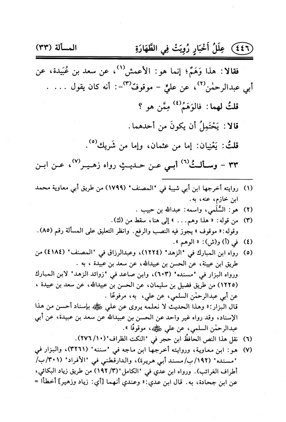 ٣٣ - وسألتُ (٦) أَبِي عَنْ حديثٍ رَوَاهُ زهير (٧) ، عن ابن