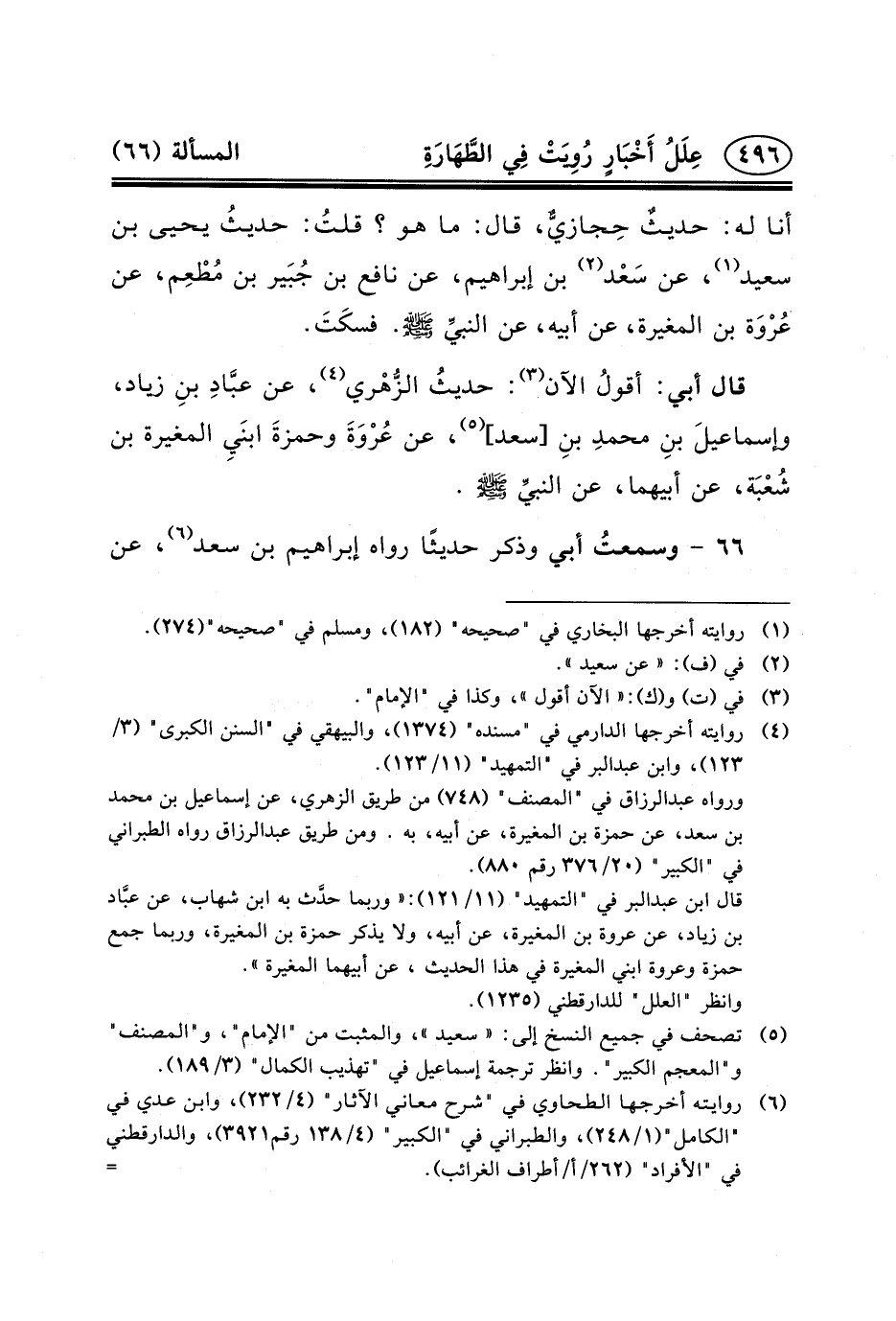 ٦٦ - وسمعتُ أَبِي وَذَكَرَ حَدِيثًا رَوَاهُ إبراهيم بن سعد (٦) ، عن