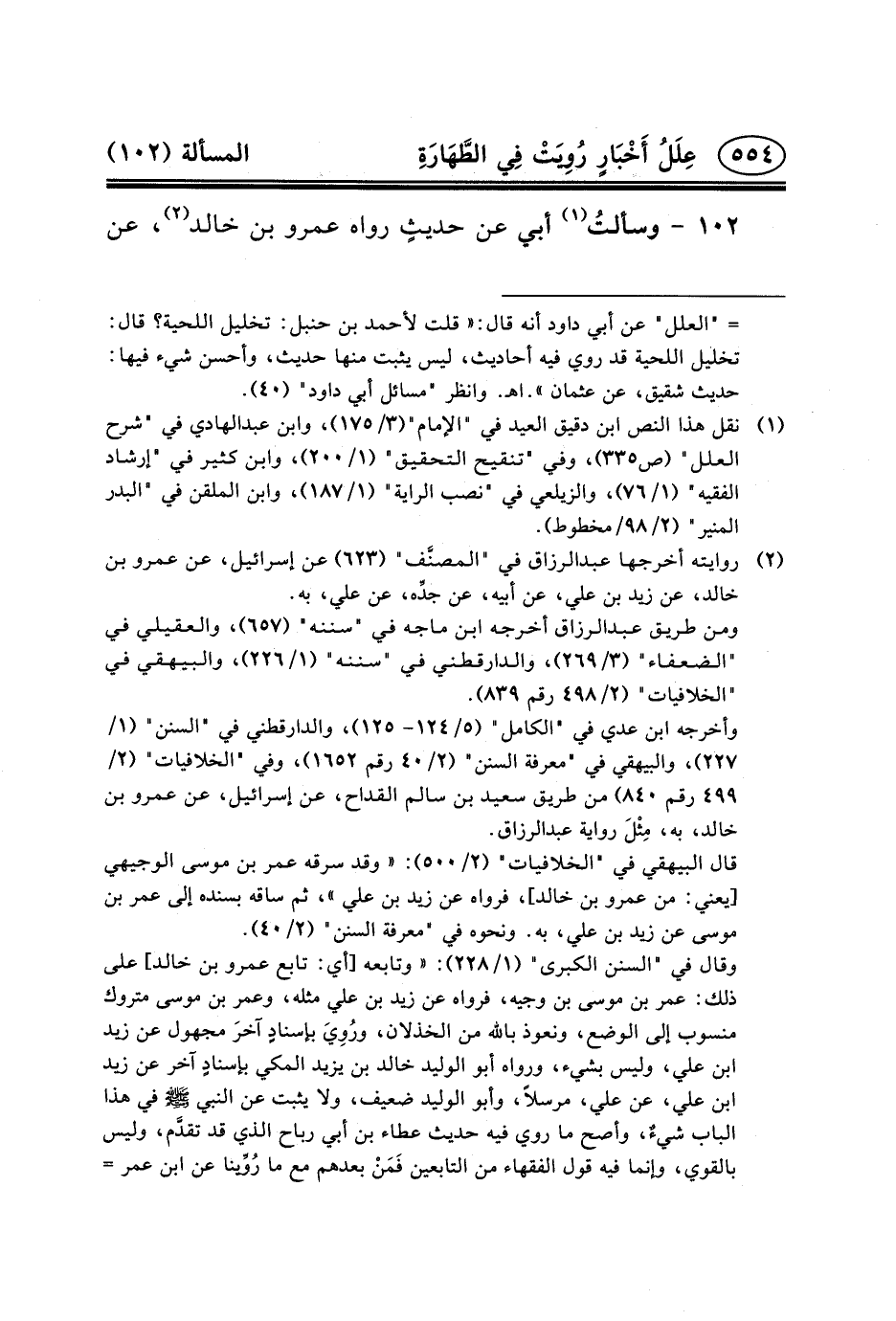 ١٠٢ - وسألتُ (١) أَبِي عَنْ حديثٍ رَوَاهُ عمرو بن خالد (٢) ،