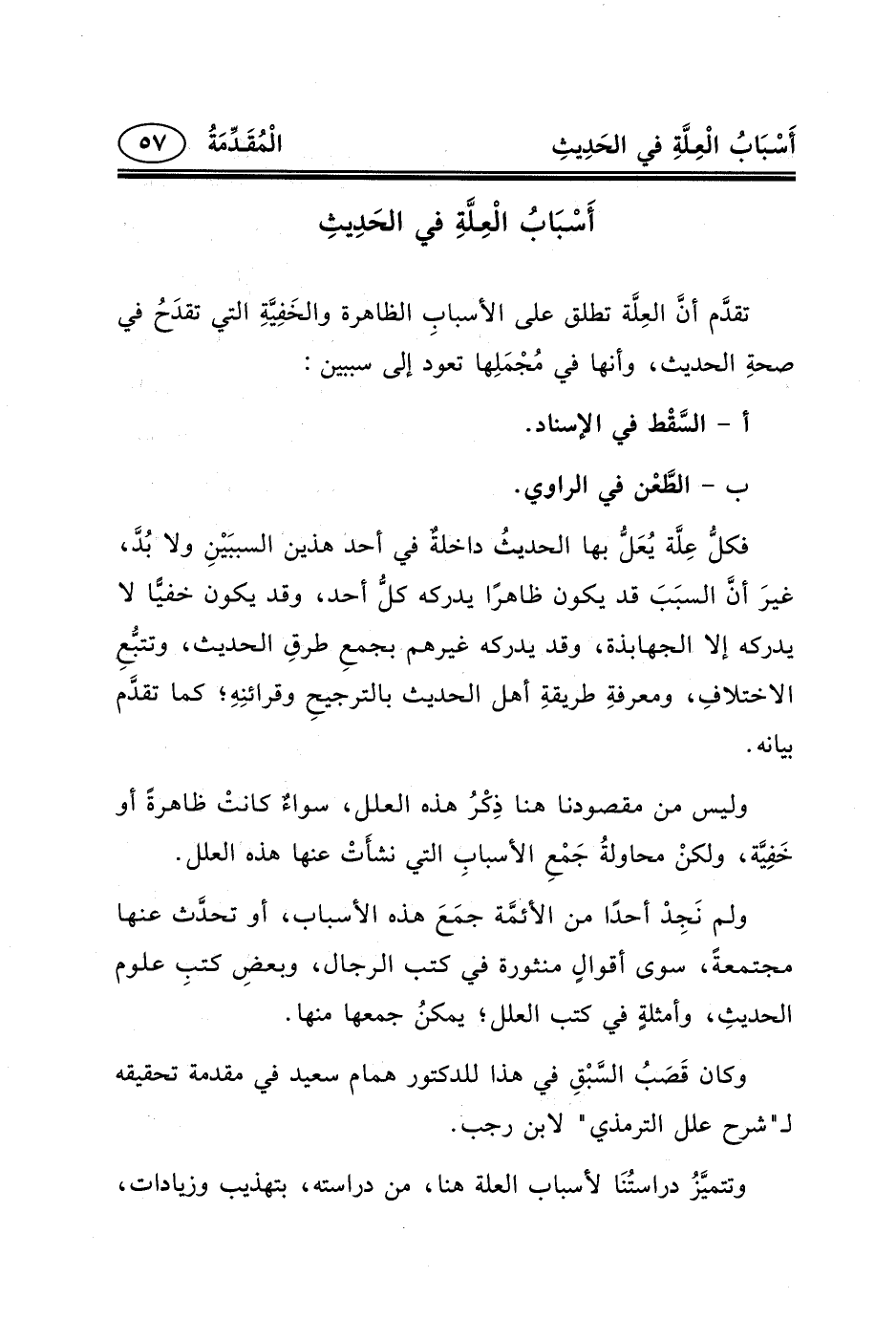 فكلُّ عِلَّة يُعَلُّ بها الحديثُ داخلةٌ في أحد هذين السببَيْنِ ولا بُدَّ، غيرَ أنَّ السبَبَ قد يكون ظاهرًا يدركه كلُّ أحد، وقد يكون خفيًّا لا يدركه إلا الجهابذة، وقد يدركه غيرهم بجمعِ طرقِ الحديث، وتتبُّعِ الاختلافِ، ومعرفةِ طريقةِ أهل الحديث بالترجيحِ وقرائنِهِ؛ كما تقدَّم بيانه.