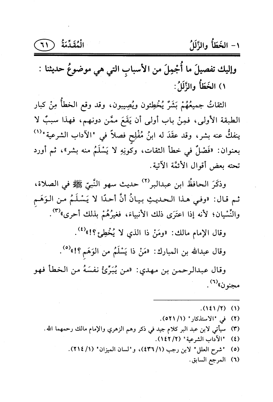 وقال عبد الرحمن بن مهدي: «من يُبَرِّئْ نفسَهُ من الخطأ فهو مجنون» (٦) .