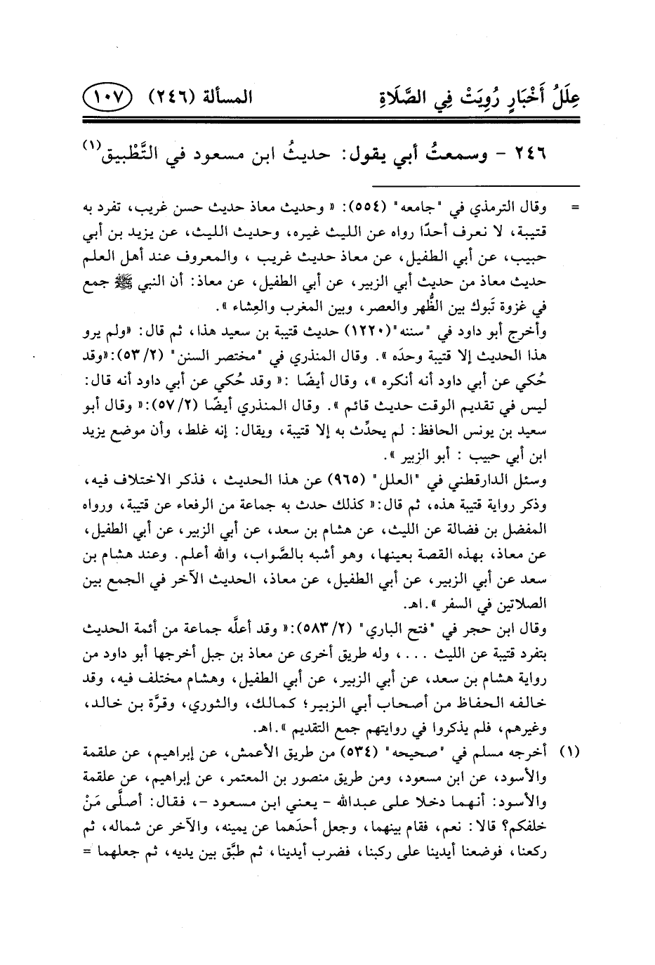 ٢٤٦ - وسمعتُ أَبِي يَقُولُ: حديثُ ابن مسعود في التَّطْبيق (١)