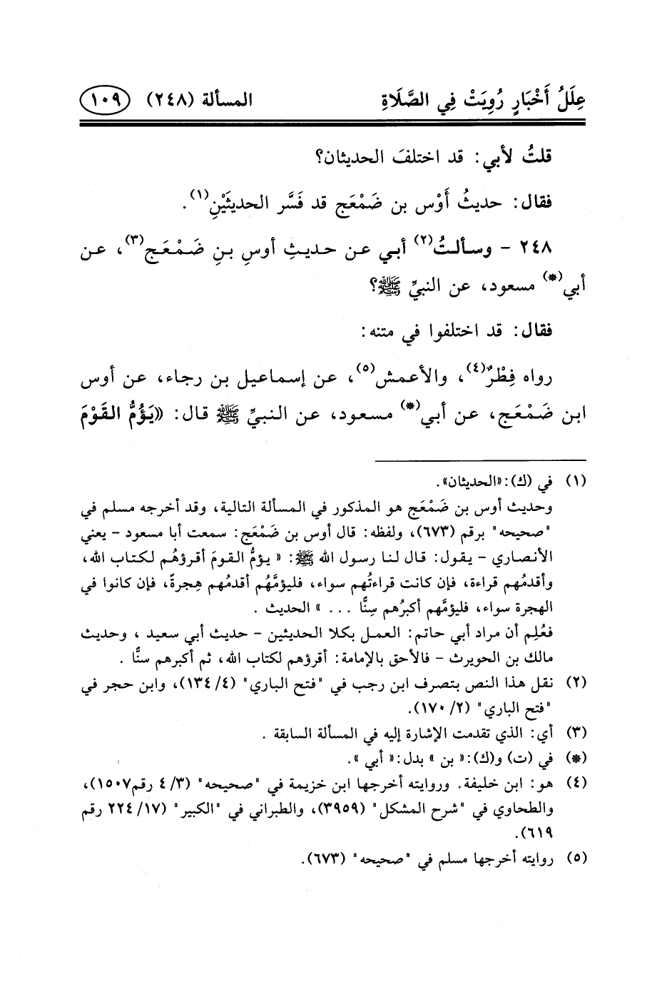 ٢٤٨ - وسألتُ (٢) أَبِي عن حديثِ أوسِ ابنِ ضَمْعَج (٣) ، عَنْ أَبِي (*) مَسْعُود، عَنِ النبيِّ (ص) ؟