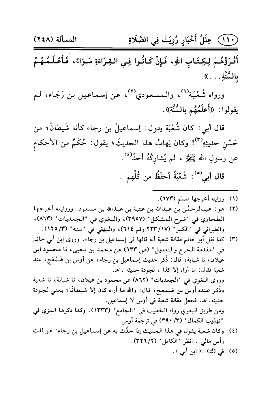 (٤) وكان شعبة يقول في هذا الحديث إذا حدَّث به عن إسماعيل بن رجاء: هو ثلث رأس مالي. انظر "الكامل" (٢/٣٢٦) .