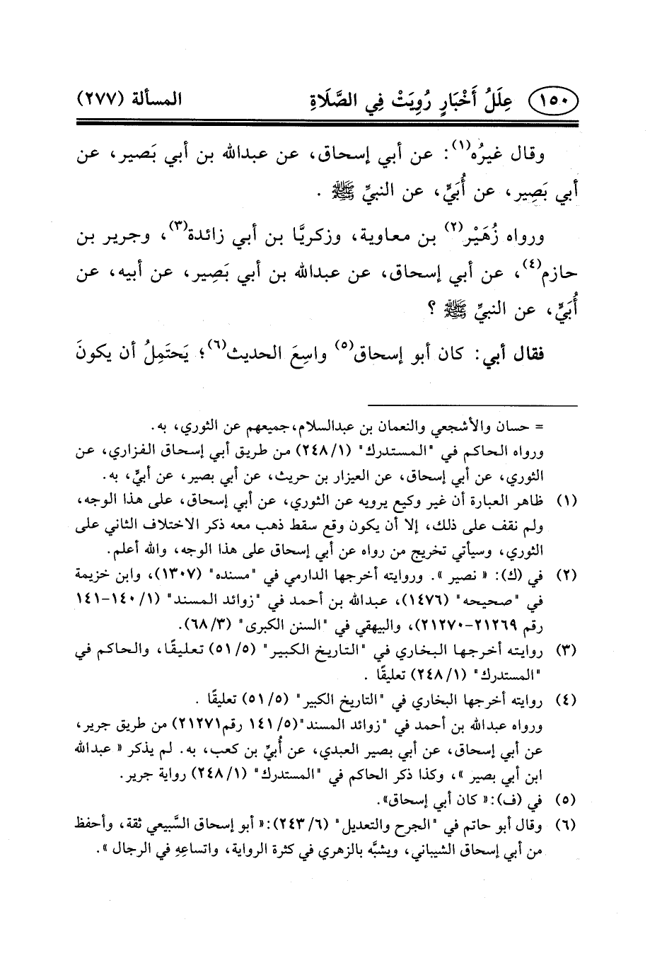 وَرَوَاهُ زُهَيْر (٢) بْن معاوية، وزكريَّا بْن أَبِي زائدة (٣) ، وجرير بْن حَازِمٍ (٤) ، عَنْ أَبِي إِسْحَاقَ، عَنْ عبد الله بْنِ أَبِي بَصِير، عَنْ أَبِيهِ، عن أُبَيٍّ، عن النبيِّ (ص) ؟