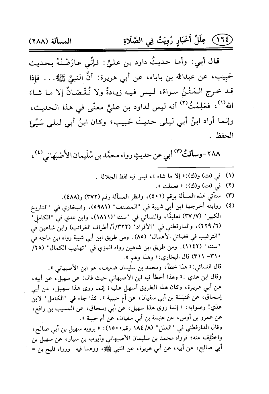 ٢٨٨-وسألتُ (٣) أَبِي عَنْ حديثٍ رَوَاهُ محمَّد بن سُلَيمان الأَصْبَهاني (٤) ،