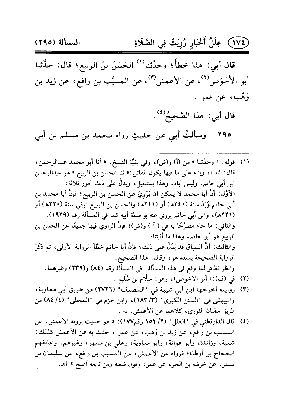 ٢٩٥- وسألتُ أَبِي عَنْ حديثٍ رواه محمد ابن مسلم بن أبي