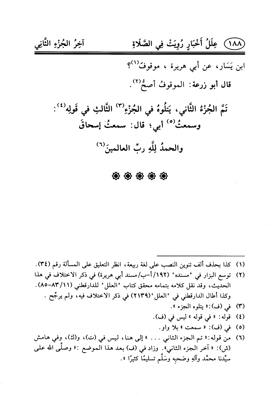 تَمَّ الجُزْءُ الثَّاني، يَتلُوهُ في الجُزْءِ (٣) الثَّالثِ فِي قَولِه (٤) : وسمعتُ (٥) أَبِي؛ قَالَ: سمعتُ إسحاقَ