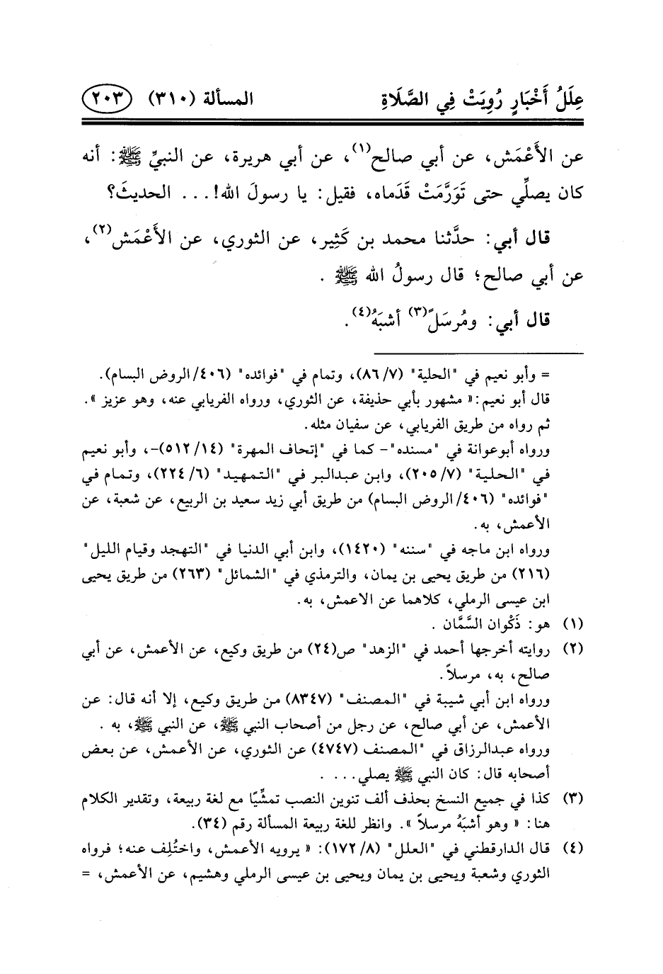 قَالَ أَبِي: حدَّثنا مُحَمَّدُ بْنُ كَثِير، عَنِ الثَّوْرِيِّ، عَنِ الأَعْمَش (٢) ، عَنْ أَبِي صَالِحٍ؛ قَال رسولُ الله (ص) .