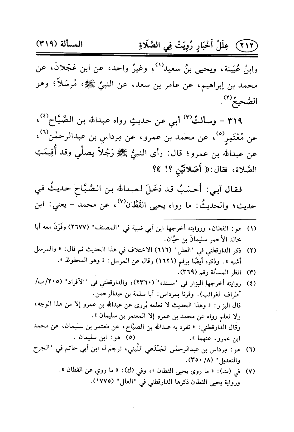 ٣١٩ - وسألتُ (٣) أَبِي عن حديثٍ رواه عبد الله بْنُ الصَّبَّاح (٤) ،