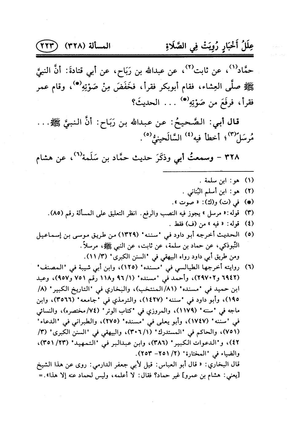 ٣٢٨ - وسمعتُ أَبِي وذكَرَ حَدِيثَ حمَّاد بن سَلَمة (٦) ،