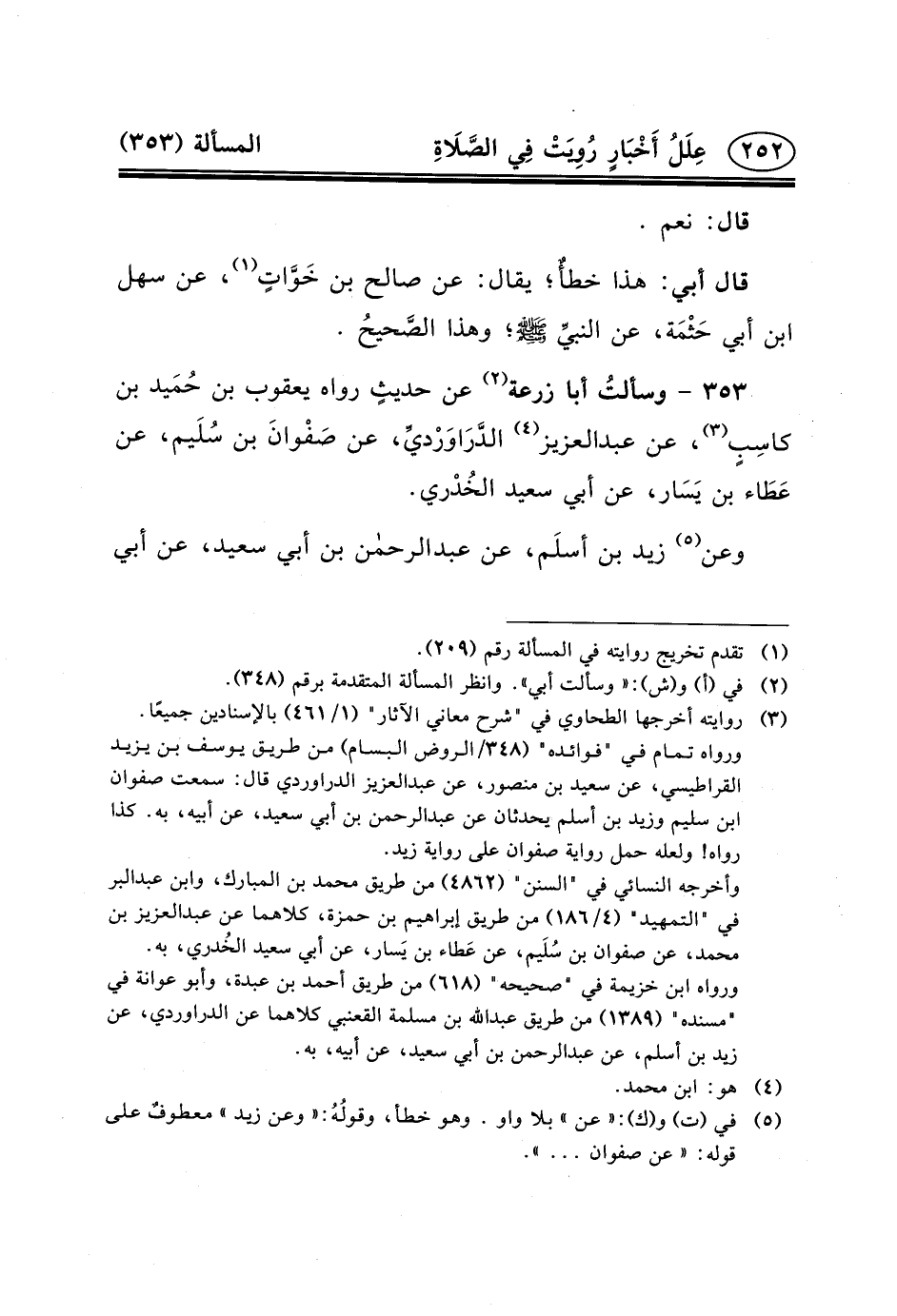 ٣٥٣ - وسألتُ أَبَا زُرْعَةَ (٢) عَنْ حديثٍ رَوَاهُ يَعْقُوبُ بْنُ حُمَيد بن كاسِبٍ (٣) ،