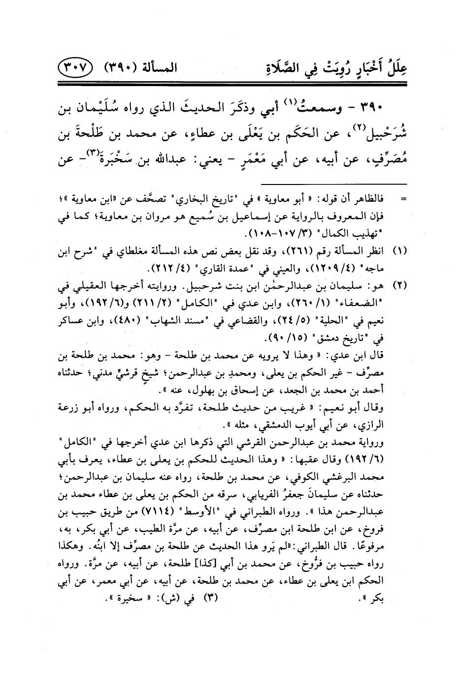 ٣٩٠ - وسمعتُ (١) أَبِي وذكَرَ الحديثَ الَّذِي رَوَاهُ سُلَيْمان بْنُ شُرَحْبيل (٢) ،