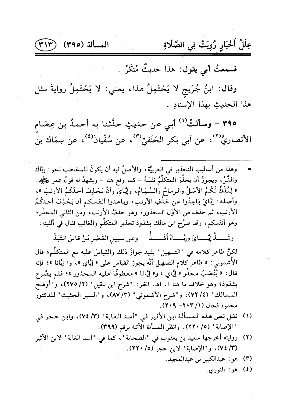 ٣٩٥ - وسألتُ (١) أَبِي عَنْ حديثٍ حدَّثنا بِهِ أحمدُ بْن عِصَامٍ الأنصاريُّ (٢) ، عَنْ أَبِي بَكْر الحَنَفيِّ (٣) ، عَنْ سُفْيانَ (٤) ، عَنْ سِمَاك بْنِ