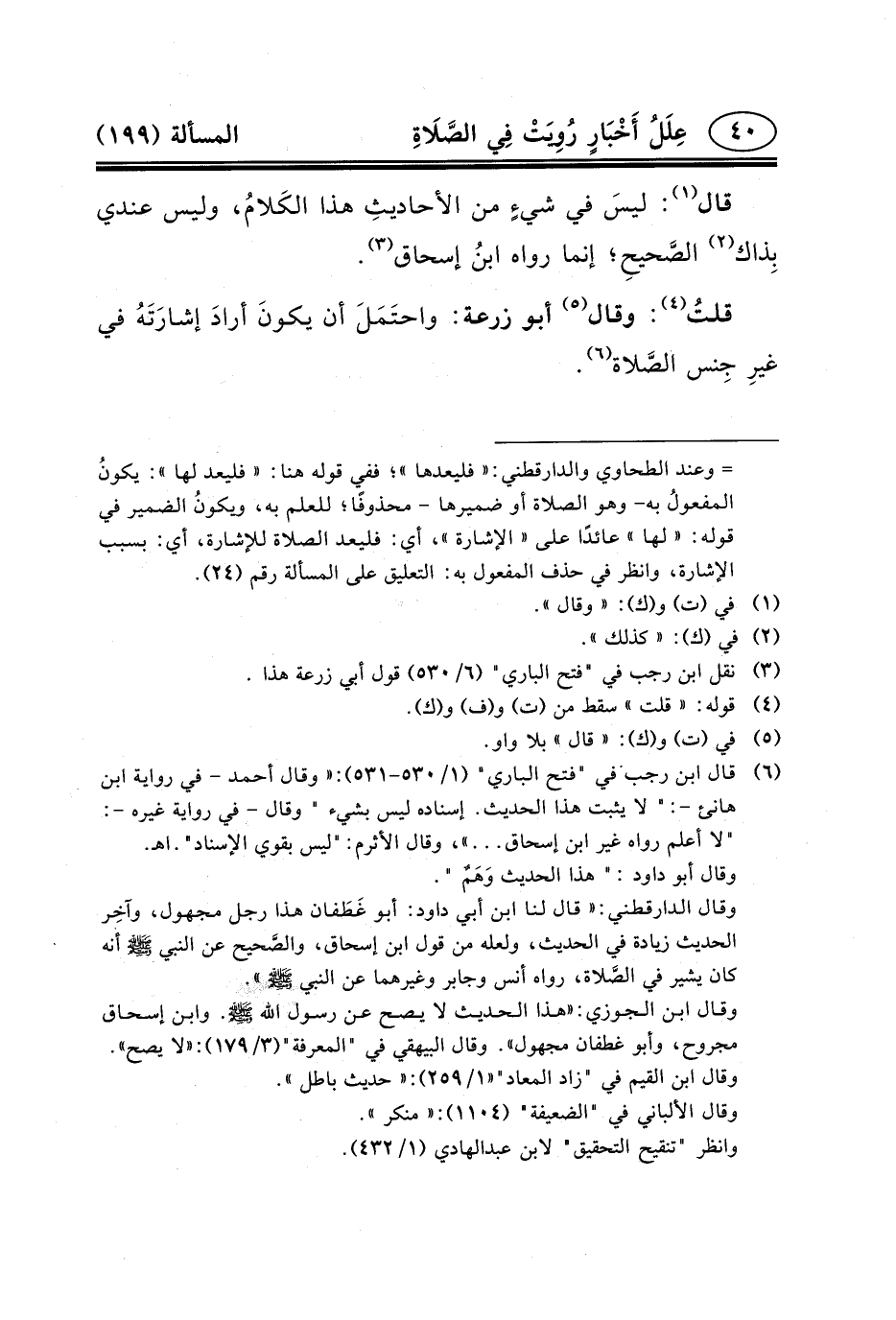 (٦) قال ابن رجب في "فتح الباري" (١/٥٣٠-٥٣١) : «وقال أحمد - في رواية ابن هانئ -: " لا يثبت هذا الحديث. إسناده ليس بشيء " وقال - في رواية غيره -: "لا أعلم رواه غير ابن إسحاق ... » ، وقال الأثرم: "ليس بقوي الإسناد". اهـ.