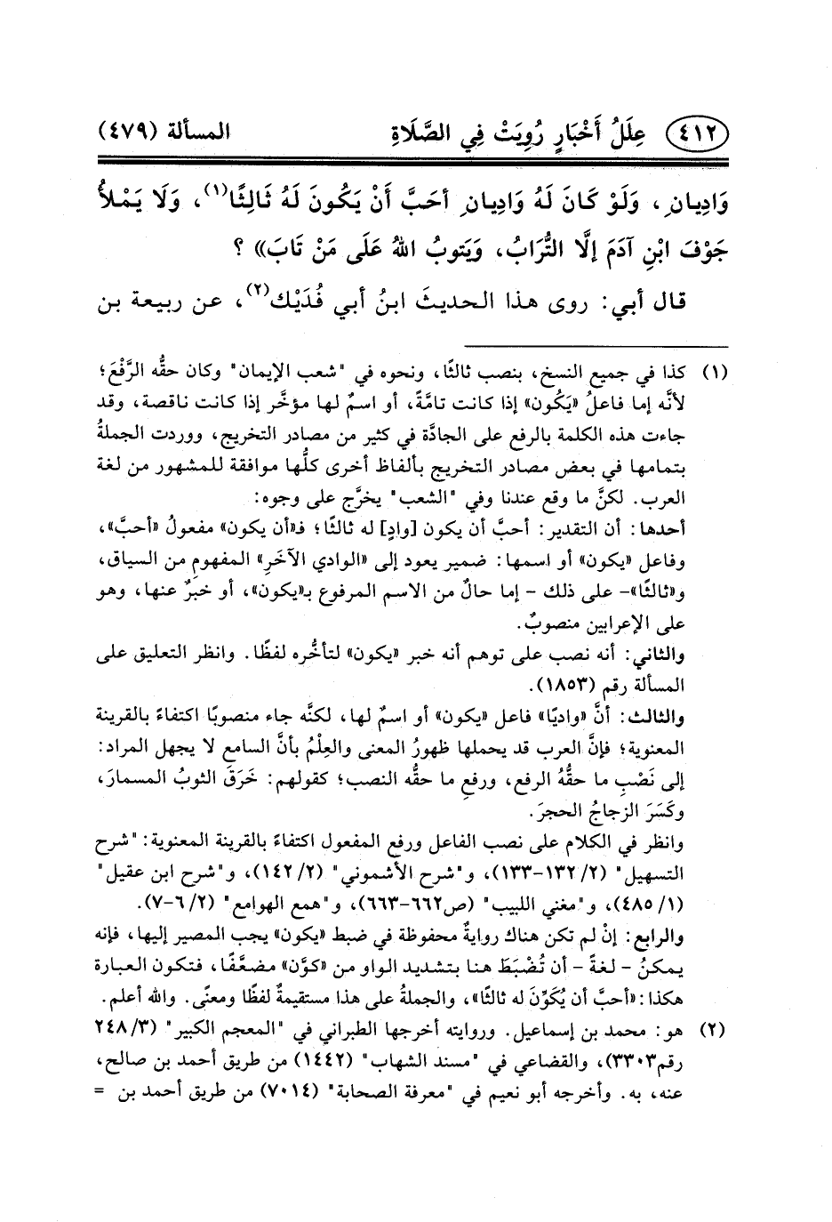 ُ وَادِيان ِ، وَلَوْ كَانَ لَهُ وَادِيان ِ أحَبَّ أَنْ يَكُونَ لَهُ ثَالِثًا (١) ،