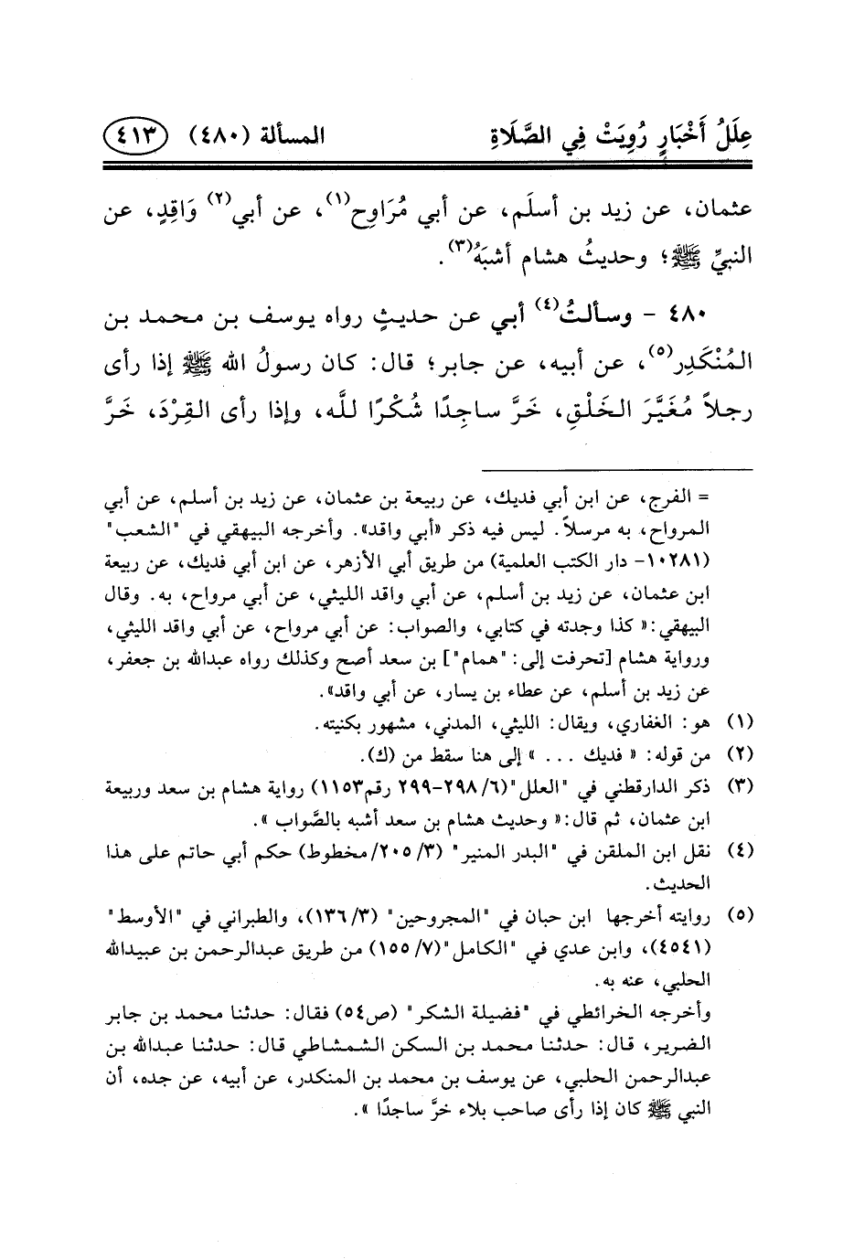 ٤٨٠ - وسألتُ (٤) أَبِي عَنْ حديثٍ رَوَاهُ يُوسُفُ بْنُ مُحَمَّدِ بْنِ المُنْكَدِر (٥) ،