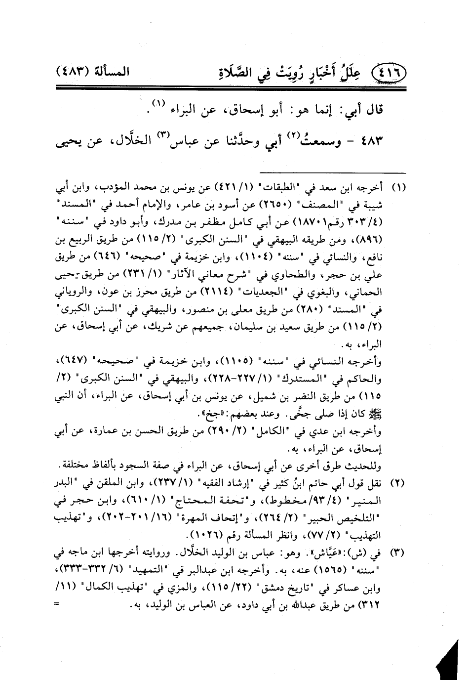 ٤٨٣ - وسمعتُ (٢) أَبِي وحدَّثنا عَنْ عَبَّاسٍ (٣) الخلَاّل، عَنْ يحيى