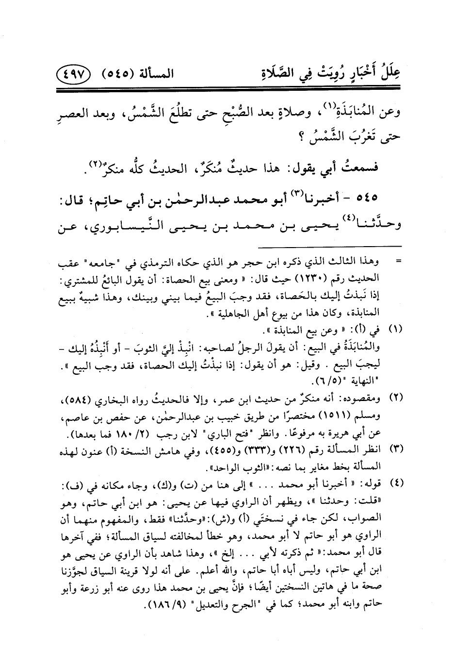 ٥٤٥ - أخبرنا (٣) أبو محمد عبد الرحمن بْنُ أَبِي حاتِم؛ قَالَ: وحدَّثنا (٤) يَحْيَى بْن مُحَمَّد بْن يَحْيَى النَّيسابوري، عن