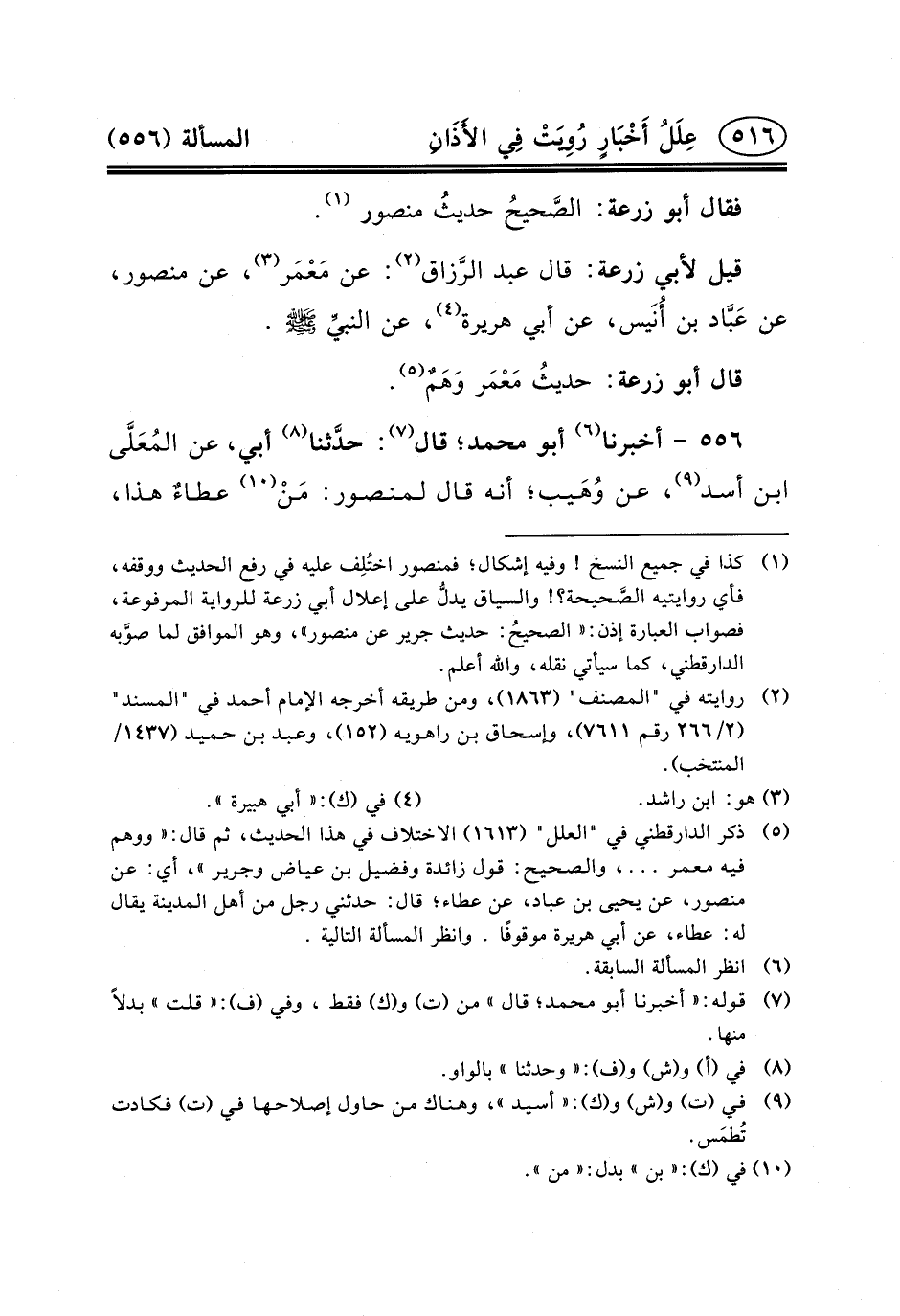 قيل لأبي زرعة: قَالَ عَبْدُ الرَّزاق (٢) : عَنْ مَعْمَر (٣) ، عَنْ مَنْصُورٍ، عَنْ عَبَّاد بْنِ أُنَيس، عَنْ أَبِي هُرَيْرَةَ (٤) ، عَنِ النبيِّ (ص) .