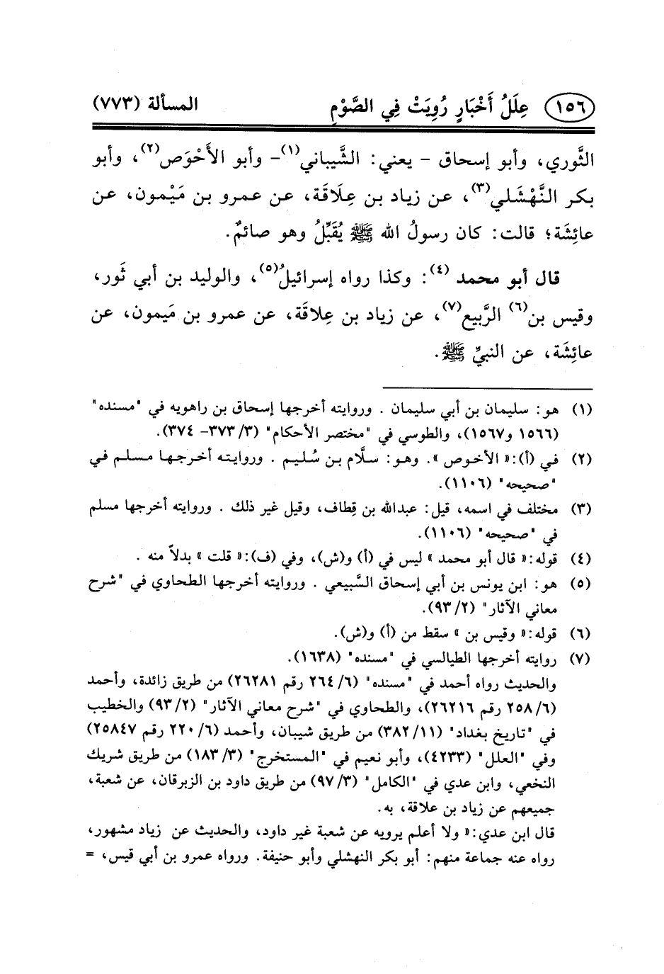 الثَّوري، وَأَبُو إِسْحَاقَ - يَعْنِي: الشَّيباني (١) - وَأَبُو الأَحْوَص (٢) ، وَأَبُو بَكْرٍ النَّهْشَلي (٣) ، عَنْ زِيَادِ بْنِ عِلَاقَة، عَنِ عَمْرِو بْنِ مَيْمون، عَنْ عائِشَة؛ قالت: كان رسولُ الله (ص) يُقَبِّلُ وَهُوَ صائمٌ.