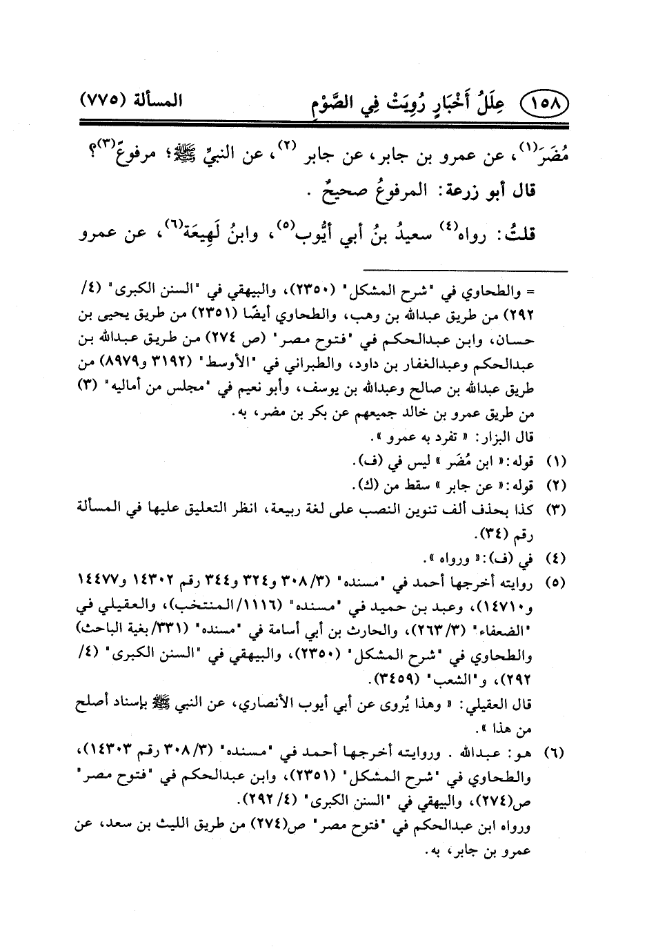 مُضَرَ (١) ، عَنْ عَمْرِو بْنِ جَابِرٍ، عن جابر (٢) ، عن النبيِّ (ص) ؛ مَرْفُوعٌ (٣) ؟