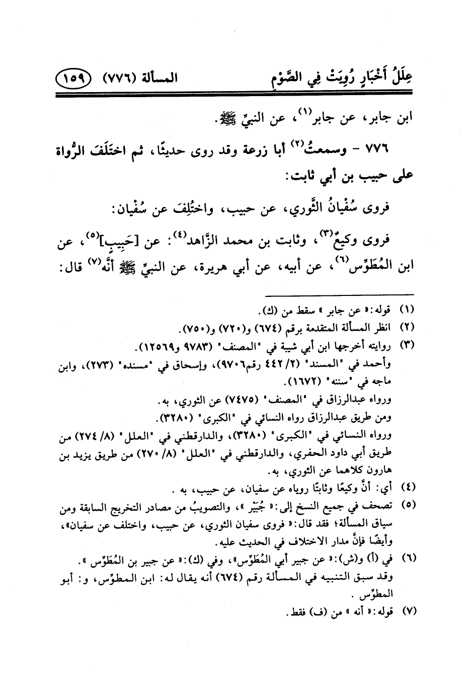 ٧٧٦- وسمعتُ (٢) أَبَا زُرْعَةَ وَقَدْ رَوَى حَدِيثًا، ثُمَّ اختَلَفَ الرُّواة عَلَى حَبِيبِ بْنِ أَبِي ثَابِتٍ: