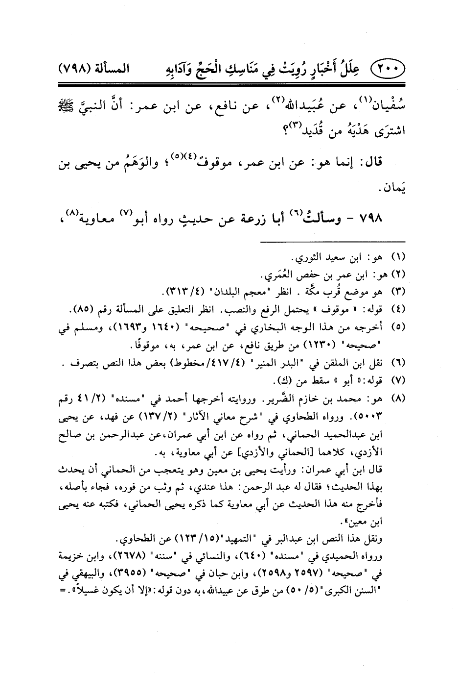 سُفْيان (١) ، عن عُبَيدالله (٢) ، عَنْ نَافِعٍ، عَنِ ابْنِ عُمَرَ: أنَّ النبيَّ (ص) اشترَى هَدْيَهُ مِنْ قُدَيد (٣) ؟