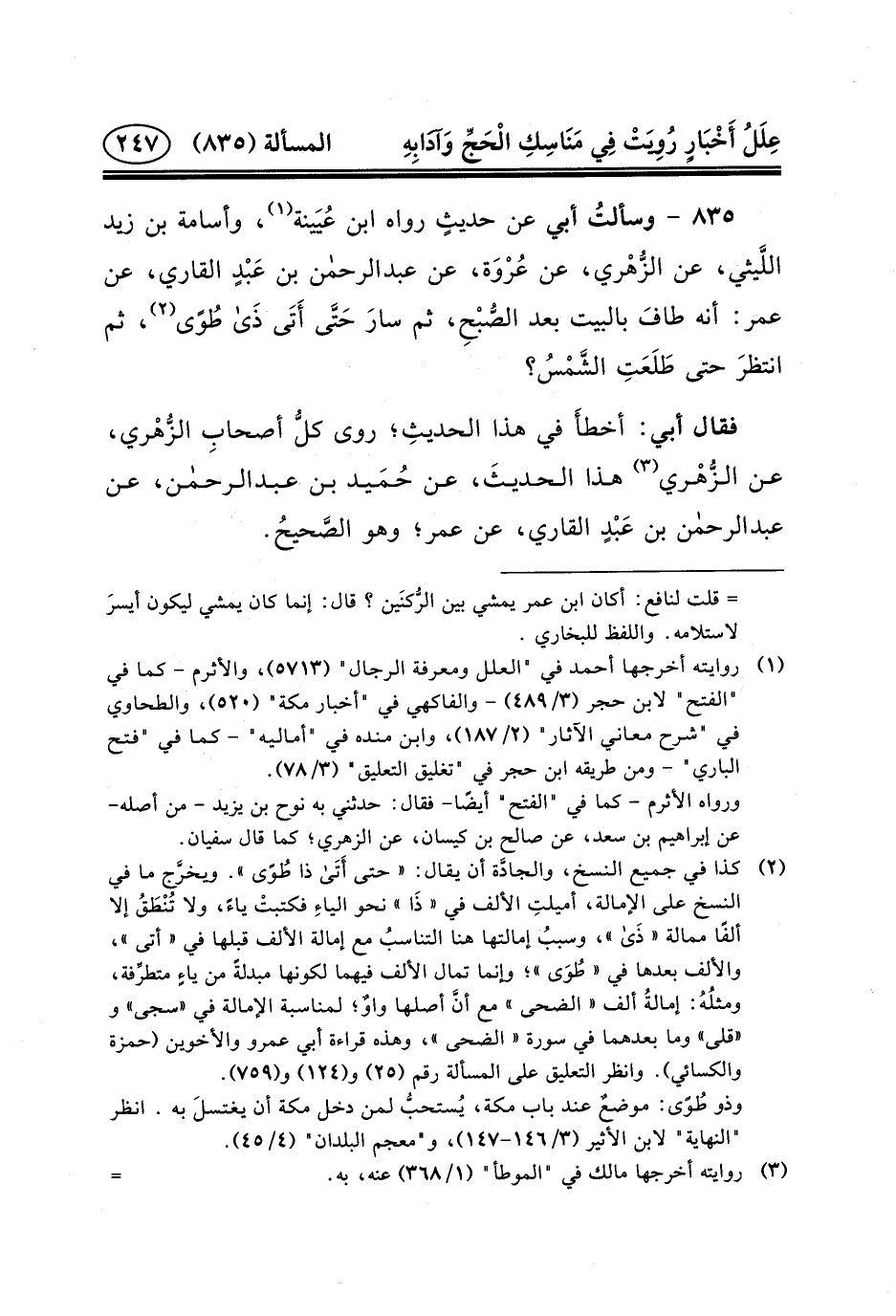 ٨٣٥ - وسألتُ أَبِي عَنْ حديثٍ رَوَاهُ ابْنُ عُيَينة (١) ،