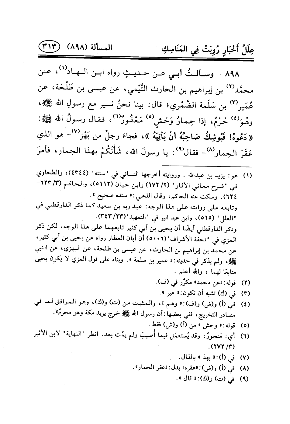 ٨٩٨ - وسألتُ أَبِي عَنْ حديثٍ رَوَاهُ ابْنُ الْهَادِ (١) ،