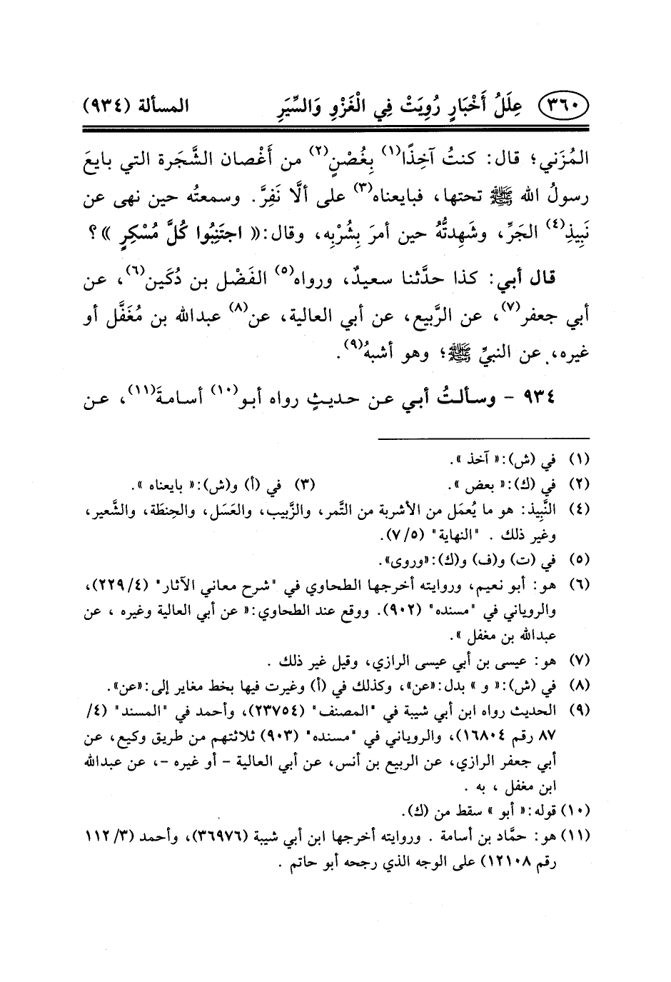 قَالَ أَبِي: كَذَا حدَّثنا سعيدٌ، وَرَوَاهُ (٥) الفَضْل بن دُكَين (٦) ، عَنْ أَبِي جَعْفَرٍ (٧) ، عَنِ الرَّبيع، عَنْ أبي العالية، عن (٨) عبد الله بْنِ مُغَفَّل أَوْ غَيْرِهِ، عَنِ النبيِّ (ص) ؛ وَهُوَ أشبهُ (٩) .
