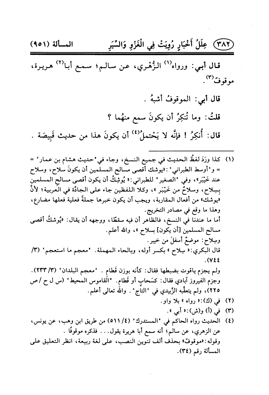 قَالَ أَبِي: وَرَوَاهُ (١) الزُّهْري، عَنْ سَالِمٍ؛ سَمِعَ أَبَا (٢) هُرَيْرَةَ، مَوْقُوفٌ (٣) .