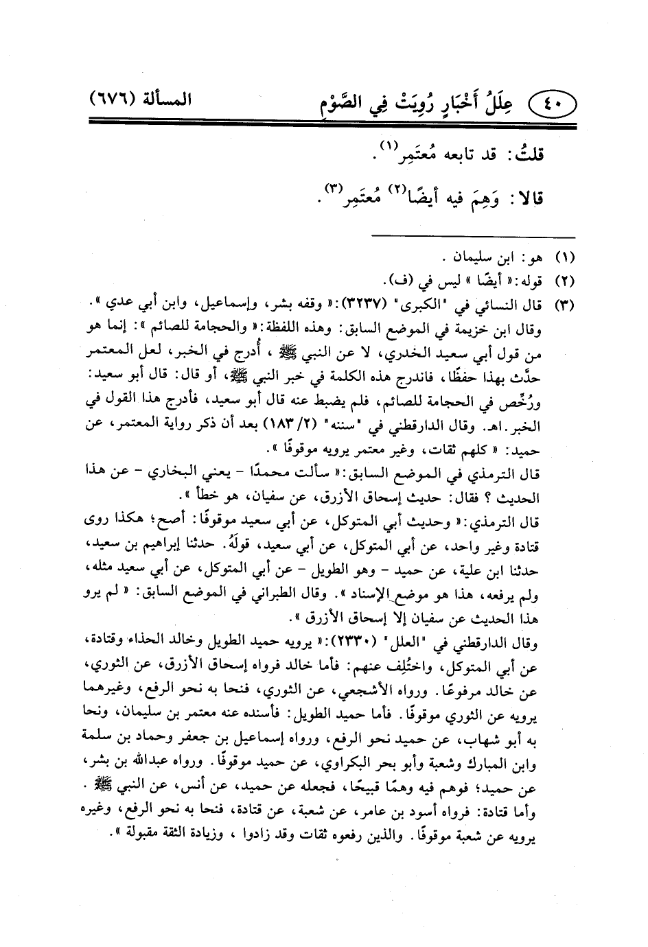 كتاب العلل لابن أبي حاتم ت الحميد (اسم الجزء: 3)