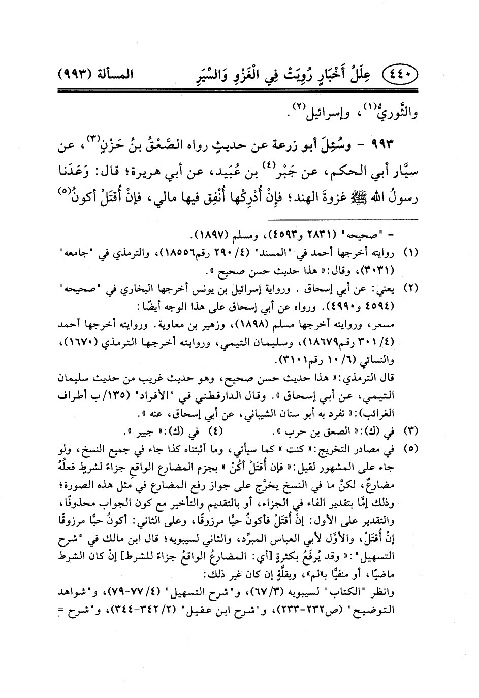 ٩٩٣ - وسُئِلَ أبو زرعة عَنْ حديثٍ رَوَاهُ الصَّعْقُ بنُ حَزْنٍ (٣) ، عَنْ سيَّار أَبِي الْحَكَمِ، عَنْ جَبْر (٤) بْنِ عُبَيد، عَنْ أَبِي هُرَيْرَةَ؛ قَالَ: وَعَدَنا رسولُ الله (ص) غزوةَ الْهِنْدِ؛ فإِنْ أُدْرِكْها أُنْفِق فيها مالي، فإنْ أُقتَلْ أكونُ (٥)