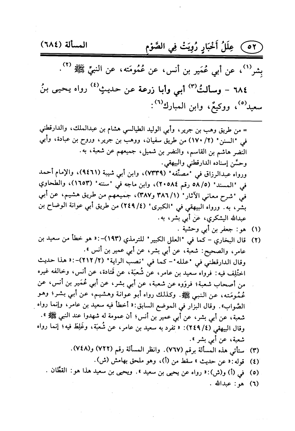 ٦٨٤- وسألتُ (٣) أَبِي وَأَبَا زُرْعَةَ عَنْ حديثٍ (٤) رَوَاهُ يَحْيَى بنُ سَعِيدٍ (٥) ، ووكيعٌ، وابن المبارك (٦) :