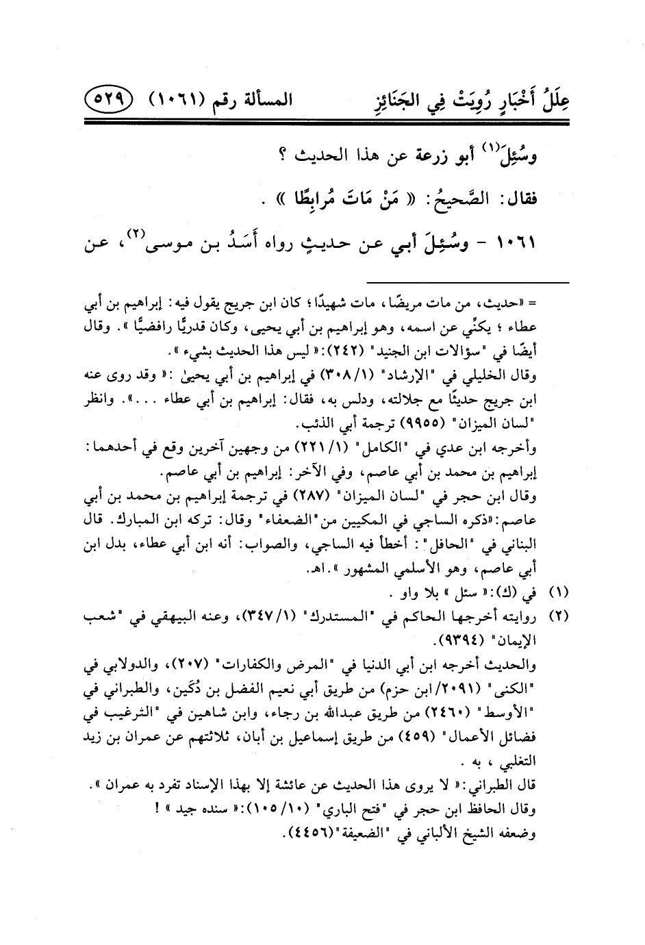 وسُئِلَ (١) أَبُو زُرْعَةَ عَن هَذَا الْحَدِيثِ؟