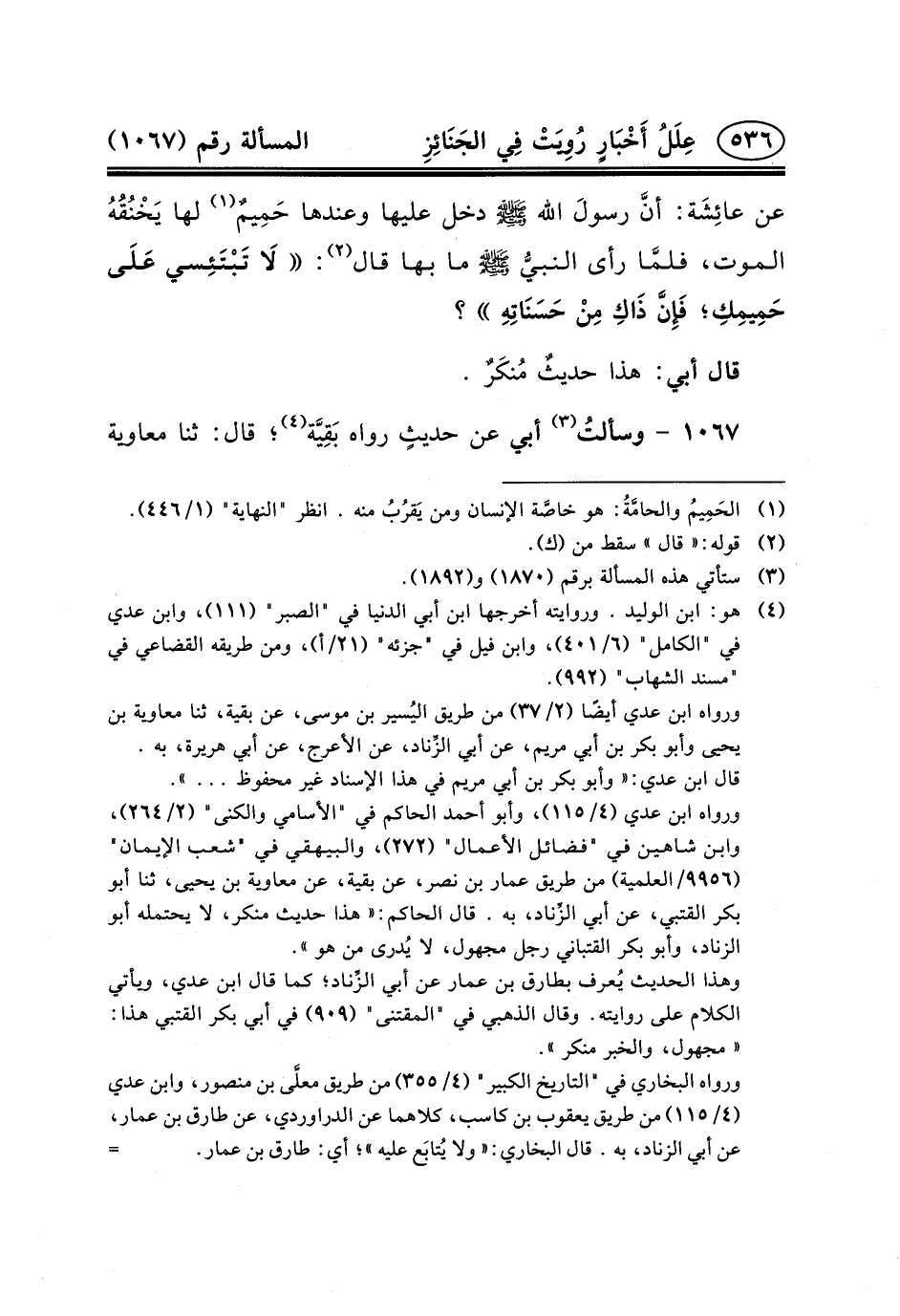١٠٦٧- وسألتُ (٣) أَبِي عَنْ حديثٍ رواه بَقِيَّة (٤) ؛