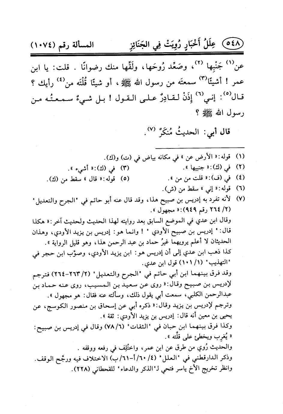 قال أبي: الحديثُ مُنكَرٌ (٧) .