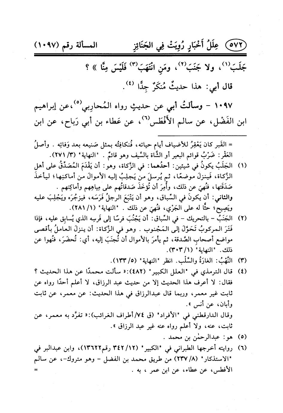 ١٠٩٧ - وسألتُ أَبِي عَنْ حديثٍ رَوَاهُ المُحارِبي (٥) ، عَنْ إِبْرَاهِيمُ بْنِ الفَضْل، عَنْ سَالِمٍ الأَفْطَس (٦) ،